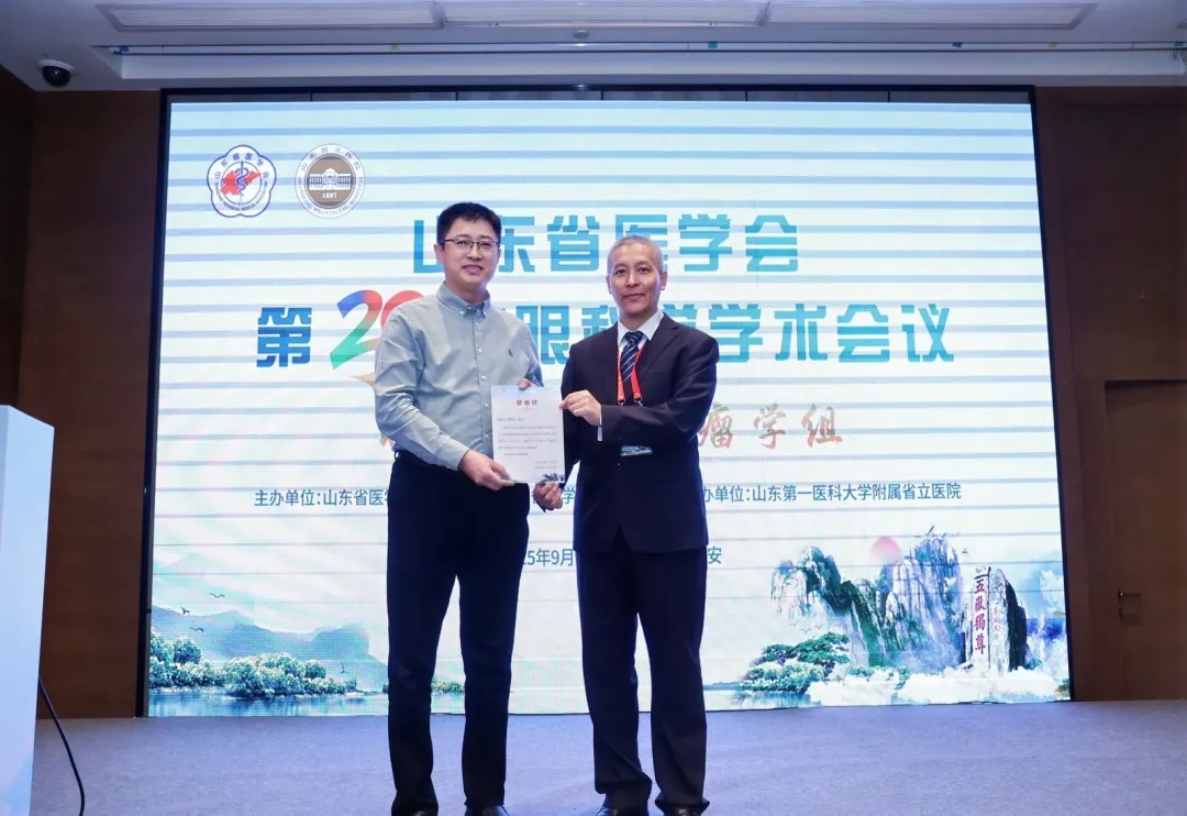 2025年9月25日-28日,由山东省医学会主办,山东省医学会眼科学分会承办,山东第一医科大学附属省立医院(山东省立医院)协办的“山东省医学会第二十九次眼科学学术会议” 在泰安市举办,我院郇彦卫副院长和桑运吉医生参加本次大会,并分别发表主题演讲。