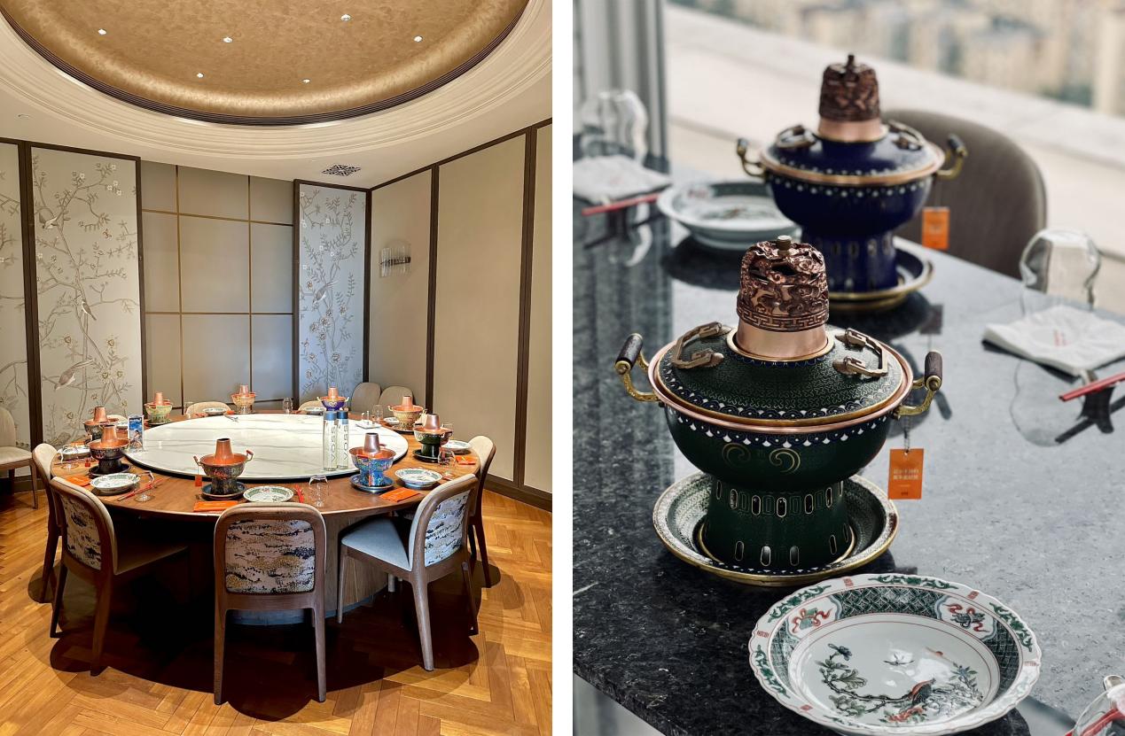 而承载这份鲜美的器物,同样不凡。店内沿用源自乾隆年间制版的手工掐丝珐琅景泰蓝铜锅,每一口锅都是精美的艺术品,铜胎坚实,釉彩绚烂,在沸水轻烟间,演绎着跨越百年的饮食美学与文化传承。一锅清汤,几片鲜肉,方寸之间,尽显宫廷御膳般的讲究。