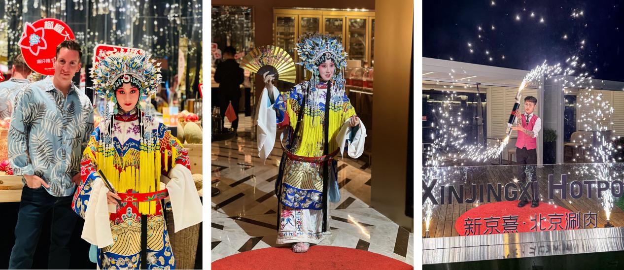 正值新京熹开羊活动季,活动期间,夜幕降临,在 19:00与20:00的特定时段,悠扬深沉的马头琴声、原始雄浑的呼麦唱腔与热情奔放的蒙古舞蹈轮番上演。客人在品尝美食的同时,可沉浸于草原艺术的磅礴与深情之中。此外,专业调酒师带来的花式调酒表演,更为这场高空盛宴增添一抹现代时尚的律动。